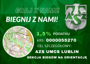 Sezonu biegowego z mapą 2025 dobiega końca, zostały nam jeszcze tradycyjne zawody Mikołajkowe połączone z finałową rundą Biegam z Mapą po Dzielnicach Lublina. Zawody odbędą się na dwóch mapach „Marina i Słoneczny Wrotków” w dniu 07.12.2025 r. (niedziela) nad Zalewem Zemborzyckim w Lublinie. Zapraszamy stałych uczestników rywalizacji jak i tych którzy chcą spróbować swoich sił w marszu lub biegu z mapą. Zgłoszenia poprzez formularz do 06 grudnia.